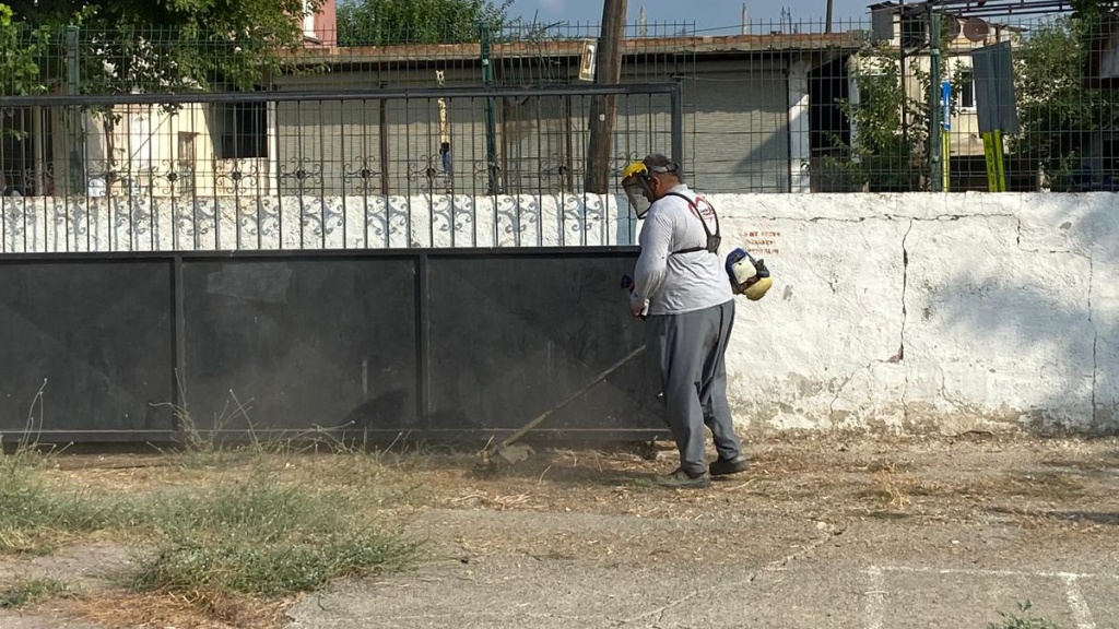 Okul bahçemiz yaz boyu biriken yabani otlar, toz ve kirlerden temizlendi.